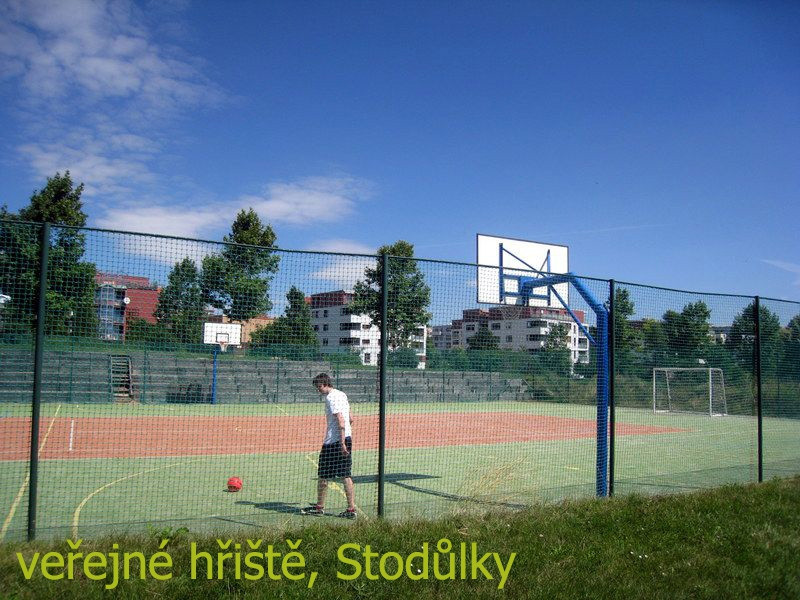 Naše řešení: 1) Instalovat kameru s napojením na městskou policii, 2) opravit basketbalové koše, přičemž zvážit možnost instalace košů z masivnějšího kovu, aby nedocházelo k jejich ničení, 3) instalovat menší branky (velikost cca hokejových branek) a jejich ukotvení pod basketbalové koše, aby nemohly být zcizeny a zároveň nemohly na nikoho spadnout, 4) předělat oplocení na pevnější síť nebo na klecové, 5) odstranit zákaz hraní fotbalu a změnit ho, s ohledem na povrch hřiště, na zákaz používaní kopaček s kolíky. Implementace tohoto řešení je možná takřka okamžitě s minimálními náklady.